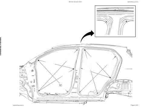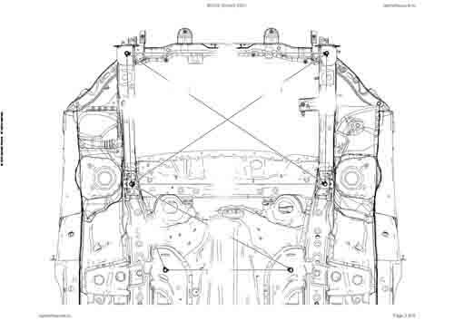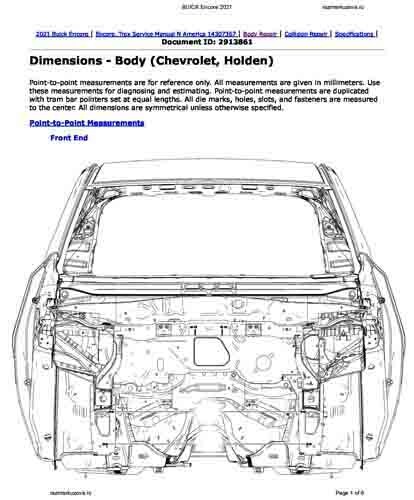 Контрольные кузовные размеры из официального руководства по ремонту кузова CHEVROLET Trax 2017-2022, в том числе диагональные размеры проемов кузова.