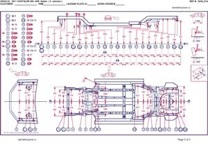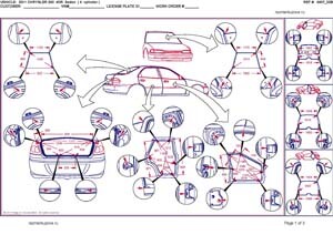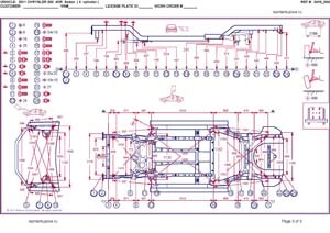 -Геометрические размеры, как проекционные, так и непосредственного измерения, в том числе диагональные размеры проемов кузова и контрольные точки для восстановления геометрии.