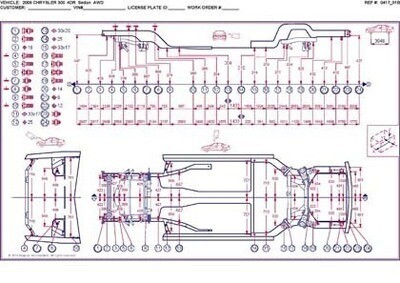 -Геометрические размеры, как проекционные, так и непосредственного измерения, в том числе диагональные размеры проемов кузова и контрольные точки для восстановления геометрии.