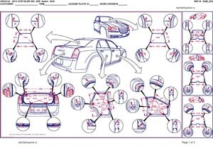 -Геометрические размеры, как проекционные, так и непосредственного измерения, в том числе диагональные размеры проемов кузова и контрольные точки для восстановления геометрии.