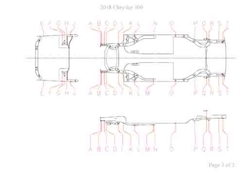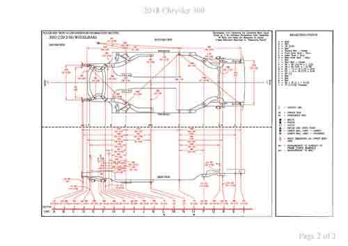 - Геометрические размеры кузова CHRYSLER 300C (LX2) 2015-2023, как проекционные, так и непосредственного измерения, в том числе диагональные размеры проемов кузова и контрольные точки для восстановления геометрии кузова.
