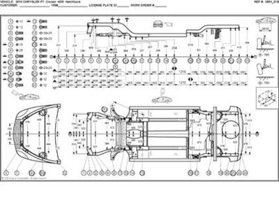 -Геометрические размеры, как проекционные, так и непосредственного измерения, в том числе диагональные размеры проемов кузова и контрольные точки для восстановления геометрии.
