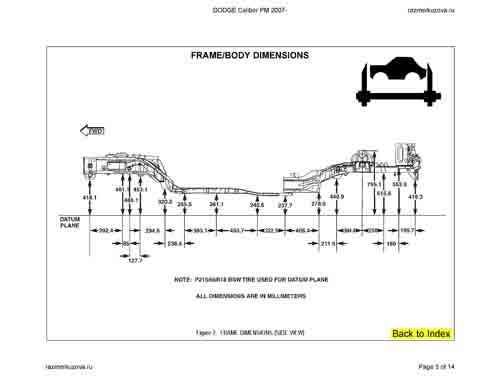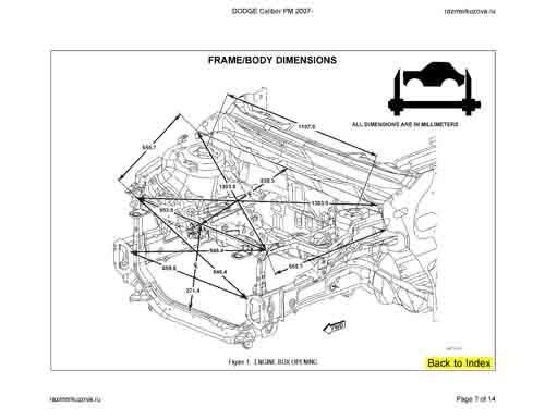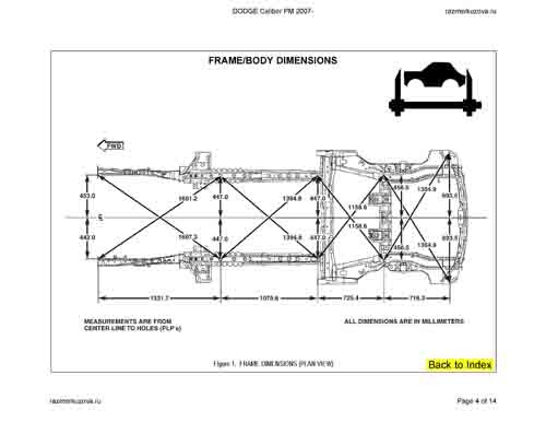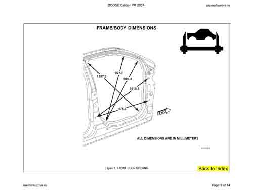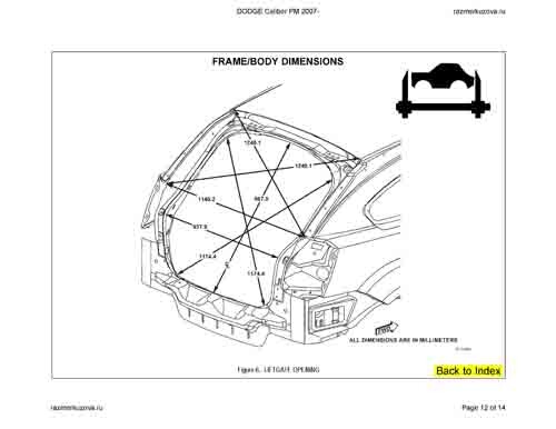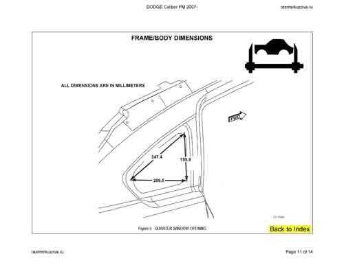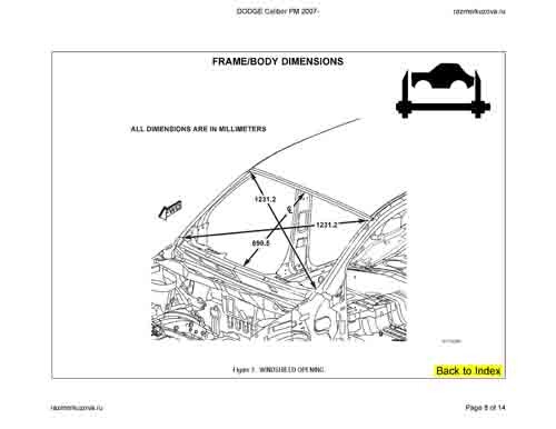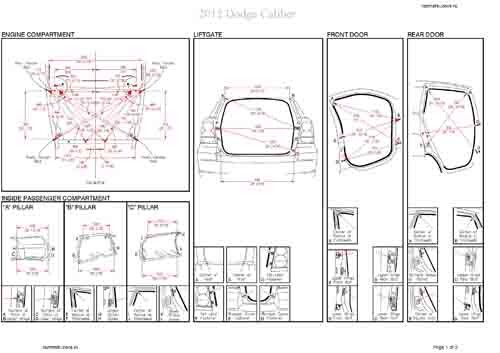 - Из заводского руководства по ремонту кузова DODGE Caliber (PM) 2006-2009-2011, в том числе диагональные размеры проемов.
