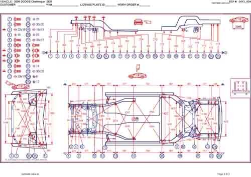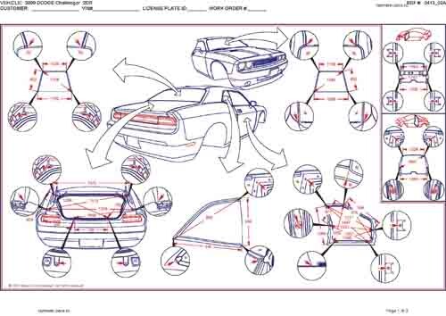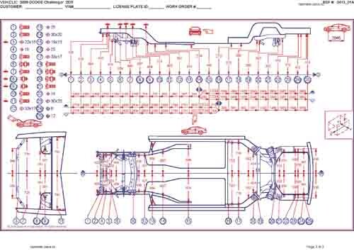 - Геометрические размеры кузова DODGE Challenger (LC) 2008-2010-2014, как проекционные, так и непосредственного измерения, в том числе диагональные размеры проемов кузова и контрольные точки для восстановления геометрии кузова.