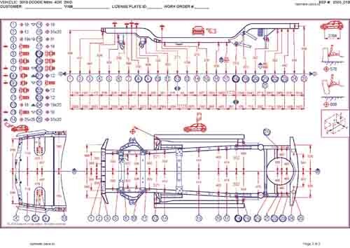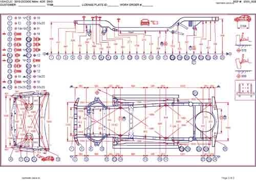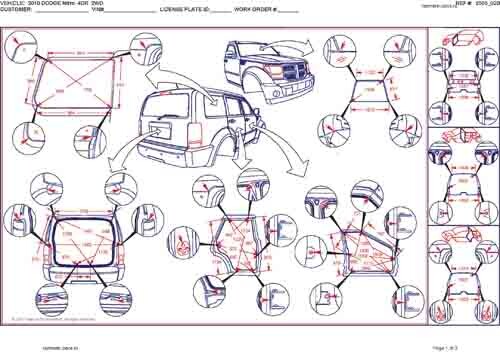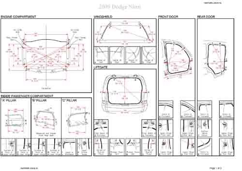 - Геометрические размеры кузова DODGE Nitro (KA) 2007-2012, как проекционные, так и непосредственного измерения, в том числе диагональные размеры проемов кузова и контрольные точки для восстановления геометрии кузова.