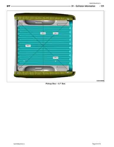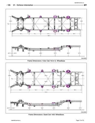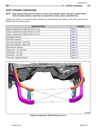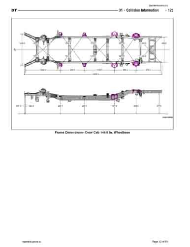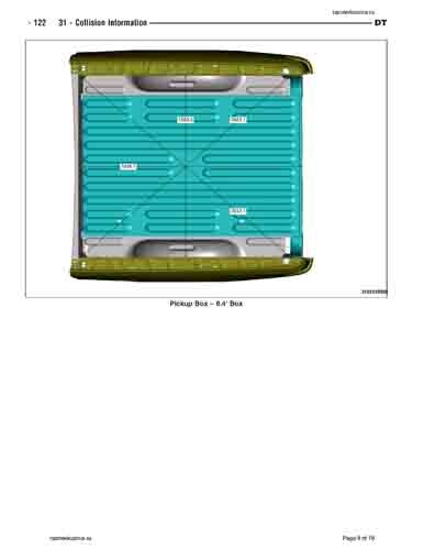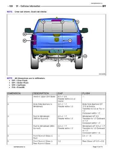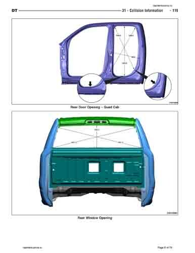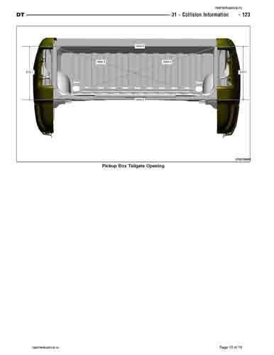 - Геометрические размеры кузова DODGE Ram 1500 2008-2019 из официального руководства по ремонту кузова, как проекционные, так и непосредственного измерения, в том числе диагональные размеры проемов кузова.