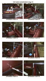 - Проекционные размеры с привязкой к стапелю. Дополнительно приведены цветные фотографии мест расположения контрольных точек на реальном автомобиле.