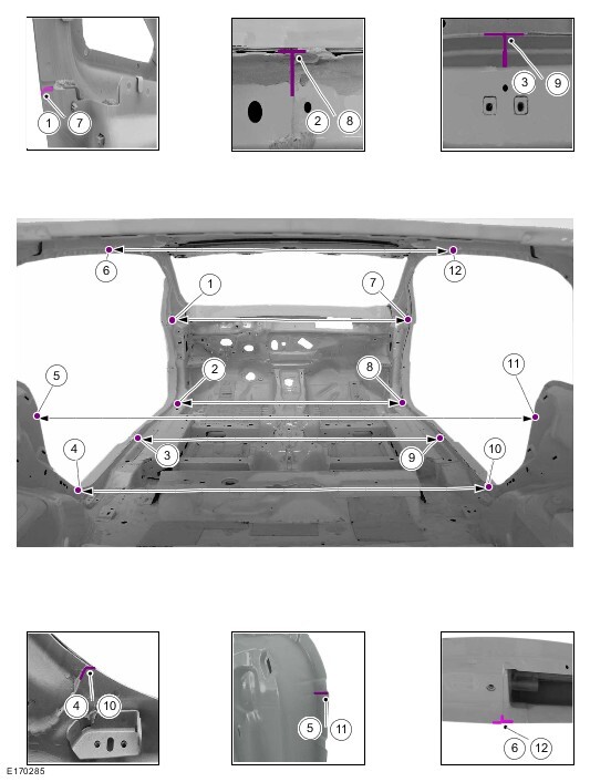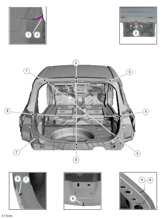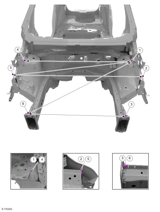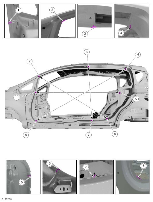 Контрольные кузовные размеры FORD B-MAX 2012-2018 из официального руководства по ремонту кузова. В том числе диагональные размеры проемов кузова и контрольные точки для восстановления геометрии кузова.
