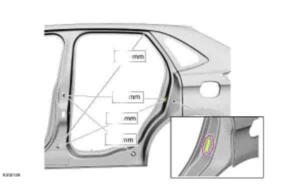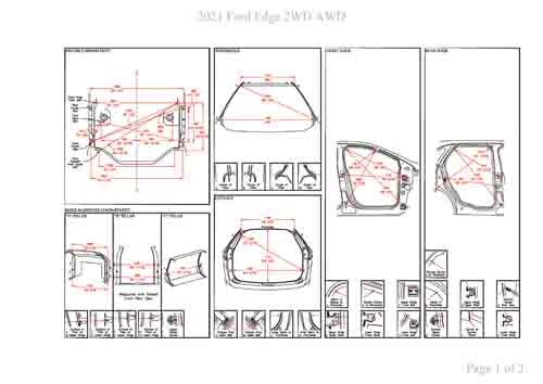 Контрольные кузовные размеры FORD Edge 2015-2023 из официального руководства по ремонту кузова. В том числе диагональные размеры проемов кузова и контрольные точки для восстановления геометрии кузова.