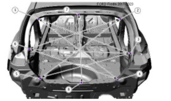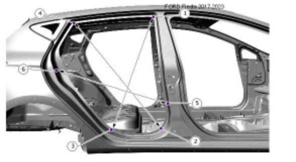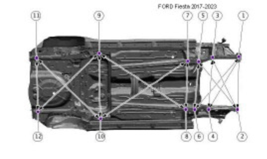 Контрольные кузовные размеры Fiesta 2017-2021-2023 из официального руководства по ремонту кузова. В том числе диагональные размеры проемов кузова и контрольные точки для восстановления геометрии кузова.