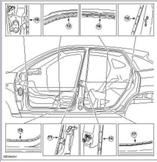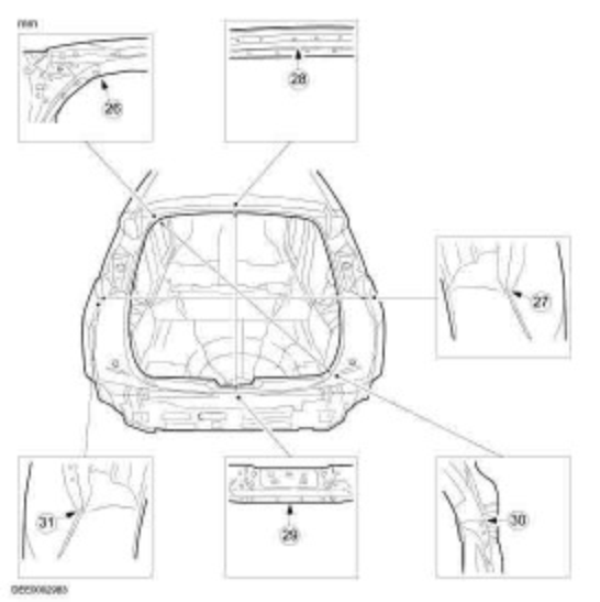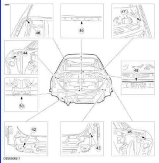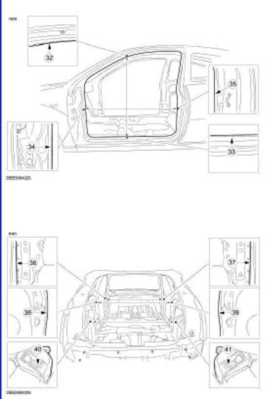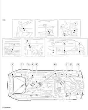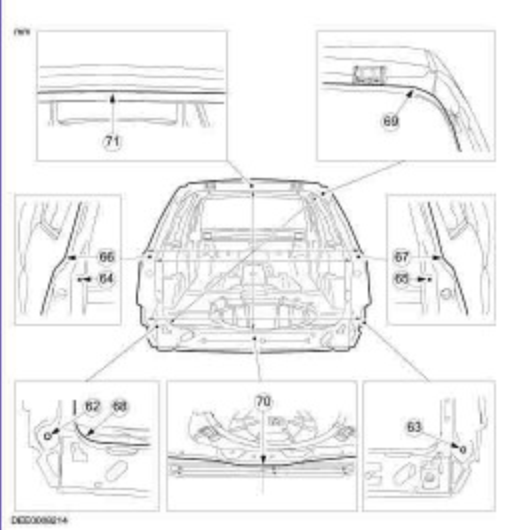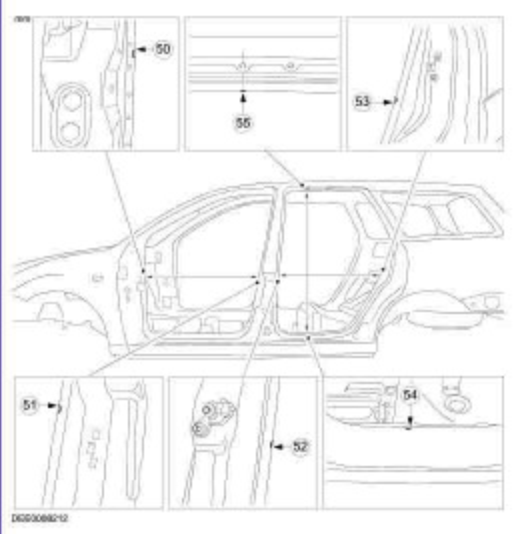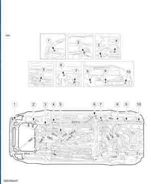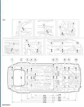 Контрольные кузовные размеры из заводского руководства по ремонту кузова FORD Focus RS 2002-2005, в том числе размеры проемов.