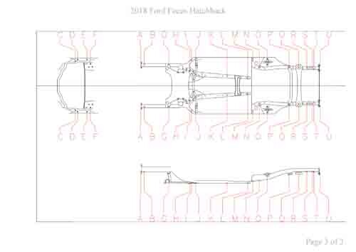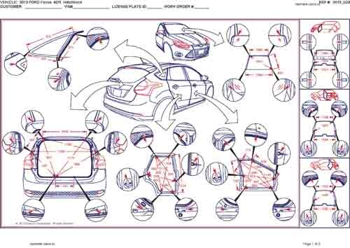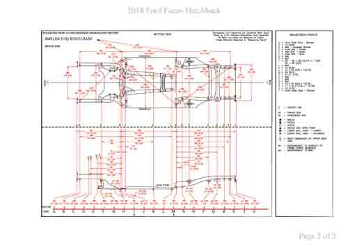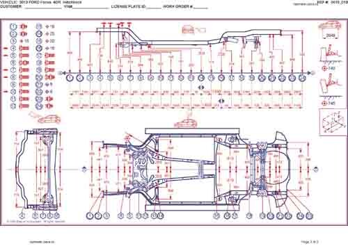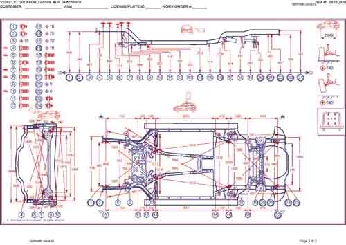 - Геометрические размеры кузова FORD Focus 2011-2019 для автомобилей североамериканского рынка, как проекционные, так и непосредственного измерения, в том числе диагональные размеры проемов кузова и контрольные точки для восстановления геометрии кузова.
