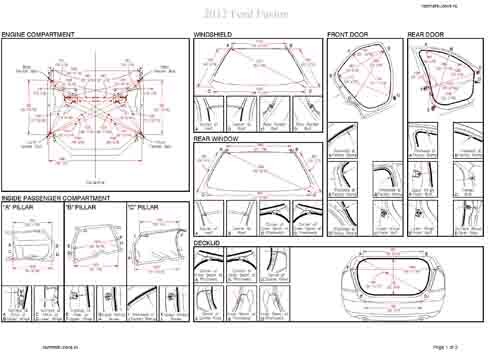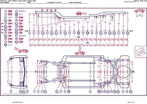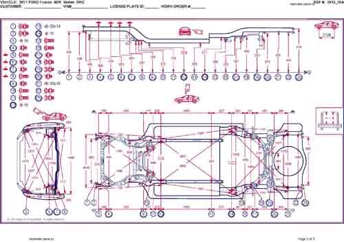 - Геометрические размеры кузова FORD Fusion (USA) 2005-2012 для автомобилей североамериканского рынка, как проекционные, так и непосредственного измерения, в том числе диагональные размеры проемов кузова и контрольные точки для восстановления геометрии кузова.