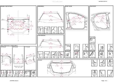 - Геометрические размеры кузова FORD Fusion, FORD Fusion Hybrid (USA) 2013-2016 для автомобилей североамериканского рынка, как проекционные, так и непосредственного измерения, в том числе диагональные размеры проемов кузова и контрольные точки для восстановления геометрии кузова.