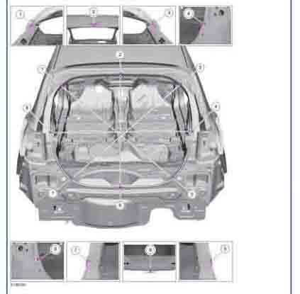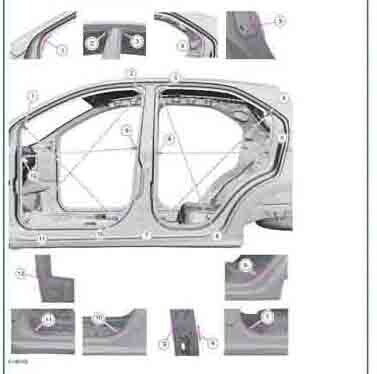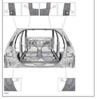Контрольные кузовные размеры FORD KA 2014-2021 из официального руководства по ремонту кузова. В том числе диагональные размеры проемов кузова и контрольные точки для восстановления геометрии кузова. Дополнительно приведены допустимые значения зазоров кузовных панелей.