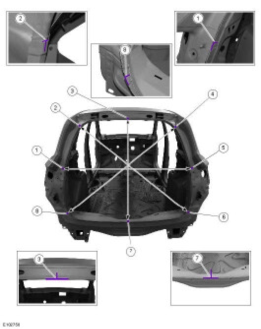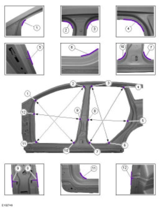 - Из заводского руководства по ремонту кузова FORD Kuga, в том числе диагональные размеры проемов и контрольные точки для восстановления геометрии.