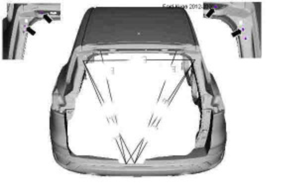 - Из заводского руководства по ремонту кузова FORD Kuga 2012-2020, в том числе размеры проемов. Дополнительно приведены величины допустимых зазоров кузовных панелей. Обратите внимание на миниатюры - изготовитель предоставил не очень полные данные по размерам.