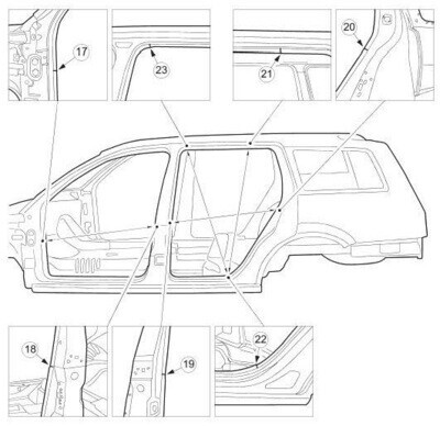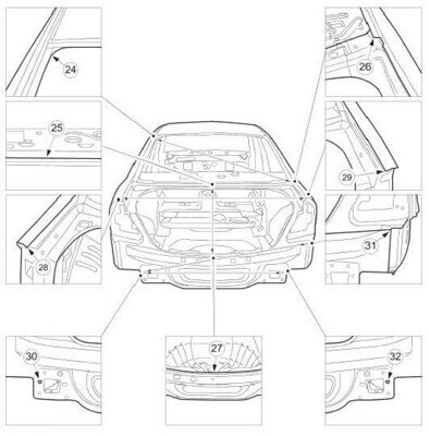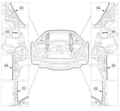 - Из заводского руководства по ремонту кузова FORD Mondeo, в том числе диагональные размеры проемов и контрольные точки для восстановления геометрии. Дополнительно даны допустимые величины зазоров кузовных панелей.