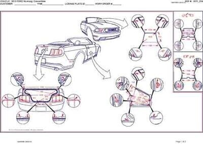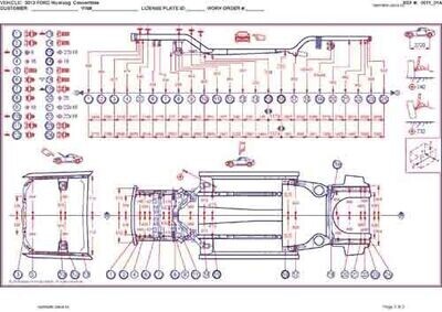 - Геометрические размеры кузова FORD Mustang 2010-2014, как проекционные, так и непосредственного измерения, в том числе диагональные размеры проемов кузова и контрольные точки для восстановления геометрии кузова.