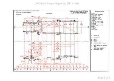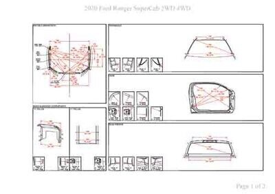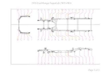 - Геометрические размеры кузова FORD Ranger 2018--, как проекционные, так и непосредственного измерения, в том числе диагональные размеры проемов кузова и контрольные точки для восстановления геометрии кузова.