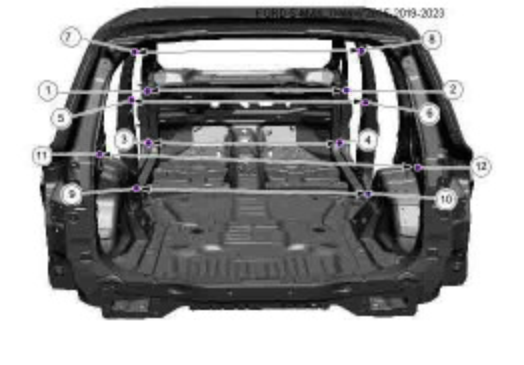 Контрольные кузовные размеры из заводского руководства по ремонту кузова FORD S-MAX, Galaxy 2015-2019-2023, в том числе размеры проемов. Дополнительно приведены величины допустимых зазоров кузовных панелей. Обратите внимание на миниатюры - изготовитель предоставил не очень полные данные по размерам.