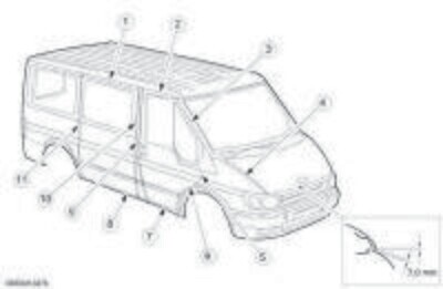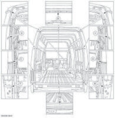 - Из заводского руководства по ремонту кузова Ford Transit, в том числе диагональные размеры проемов и контрольные точки для восстановления геометрии. Размеры рамы даны для 11-ти вариантов исполнения кузова. Дополнительно даны допустимые величины зазоров кузовных панелей.