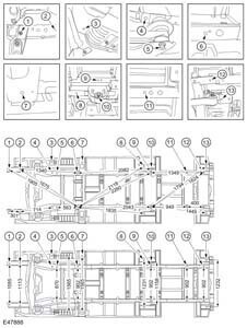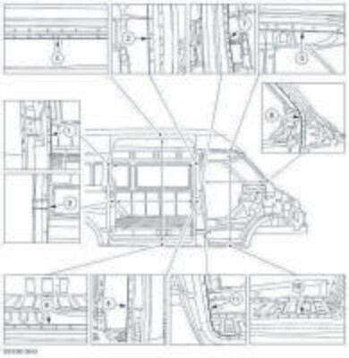 - Из заводского руководства по ремонту кузова Ford Transit 2006-2014, в том числе диагональные размеры проемов и контрольные точки для восстановления геометрии. Размеры рамы даны для 11-ти вариантов исполнения кузова.