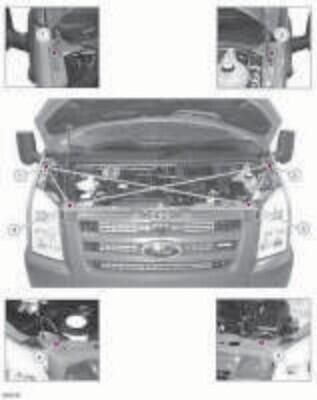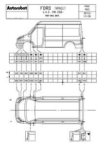 - Проекционные геометрические размеры кузова Ford Transit с привязкой к стапелю. Дополнительно приведены цветные фотографии мест расположения контрольных точек на реальном автомобиле.