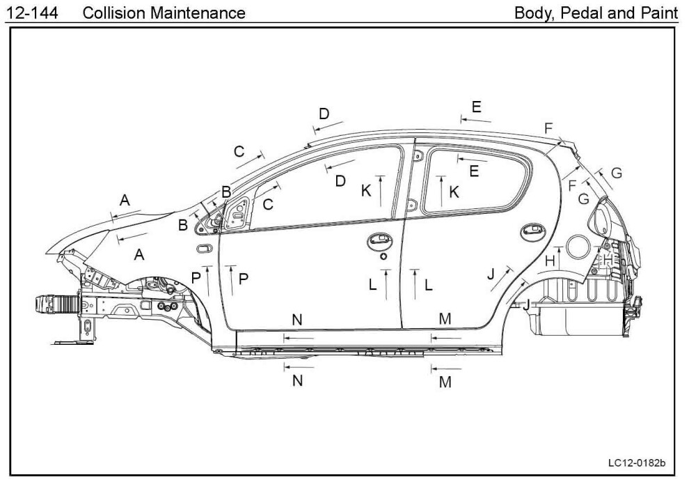 Контрольные размеры кузова для автомобилей GEELY GX2 (Panda Cross, LC Cross) 2011-- из заводского руководства по ремонту кузова, в том числе размеры проемов кузова. Дополнительно приведены сведения о допустимых зазорах кузовных панелей.