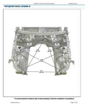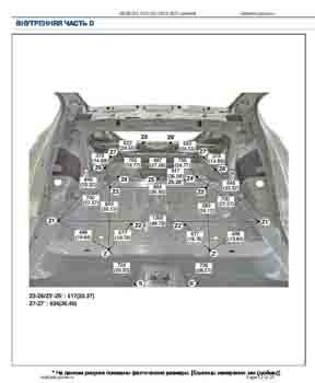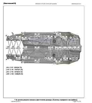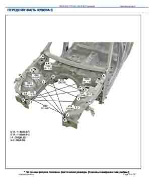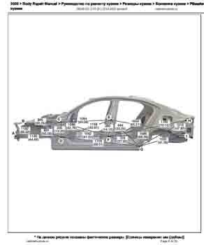 Контрольные размеры кузова для автомобилей GENESIS G70 (IK) 2018-2021-- из заводского руководства по ремонту кузова, в том числе размеры проемов кузова. Дополнительно приведены сведения о допустимых зазорах кузовных панелей.