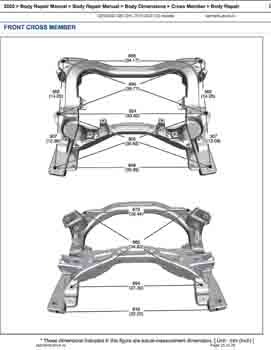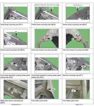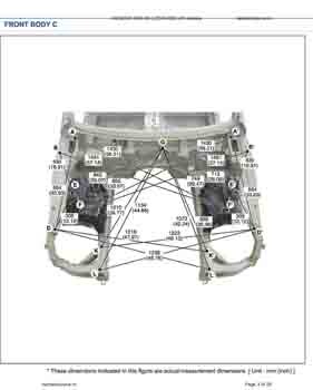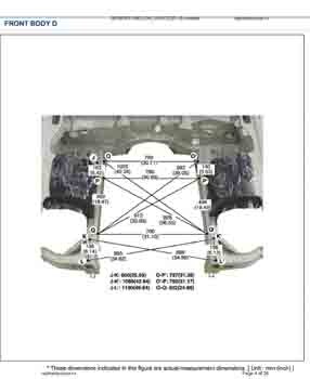 Контрольные размеры кузова для автомобилей GENESIS G80 (DH) 2016-2020 из заводского руководства по ремонту кузова, в том числе размеры проемов кузова. Дополнительно приведены сведения о допустимых зазорах кузовных панелей.
