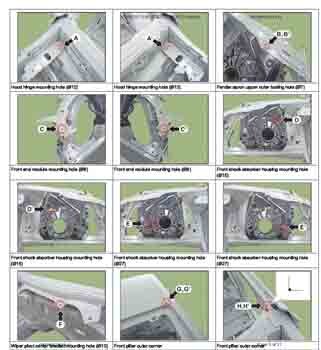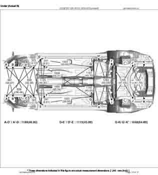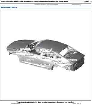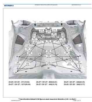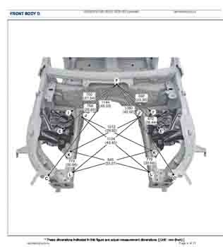 Контрольные размеры кузова для автомобилей GENESIS G80 (RG3) 2020-2023-н.в. из заводского руководства по ремонту кузова, в том числе размеры проемов кузова. Дополнительно приведены сведения о допустимых зазорах кузовных панелей.