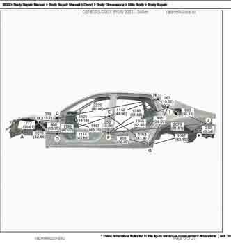 Контрольные размеры кузова для автомобилей GENESIS G90 II (RS4) 2021-- из заводского руководства по ремонту кузова, в том числе размеры проемов кузова. Даны чертежи для моделей Седан (Sedan) и Седан L (Limousine). Дополнительно приведены сведения о допустимых зазорах кузовных панелей.