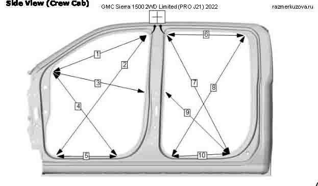 Контрольные кузовные размеры из официального руководства по ремонту кузова GMC Sierra 1500 2018-2022--, в том числе диагональные размеры проемов кузова. Обратите внимание: информация довольно скудна. В галерее представлены ВСЕ имеющиеся чертежи.