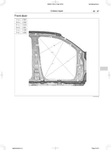 Контрольные размеры кузова для автомобилей GREAT WALL Poer 2019-- из заводского руководства по ремонту кузова, в том числе размеры проемов кузова. Дополнительно приведены сведения о допустимых зазорах кузовных панелей.