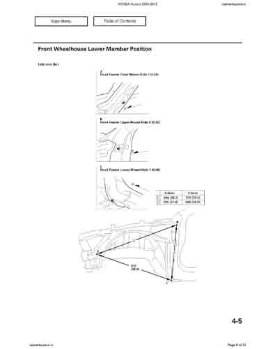 Контрольные кузовные размеры HONDA Accord VIII 2008-2012 североамериканского рынка