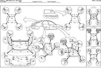- Размеры кузова, как проекционные, так и непосредственного измерения, в том числе диагональные размеры проемов кузова.
