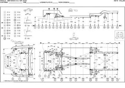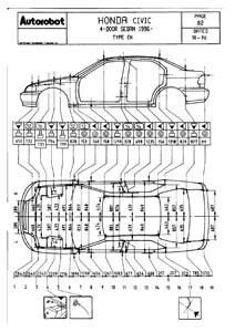 Контрольные кузовные размеры HONDA Civic VI 1995-2001: