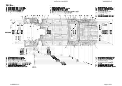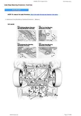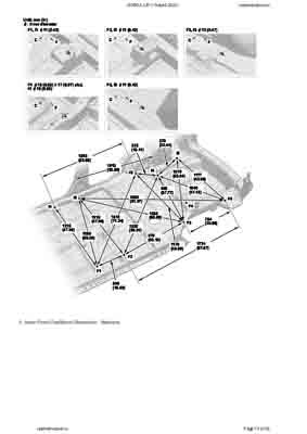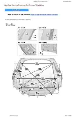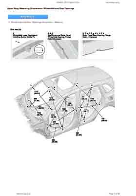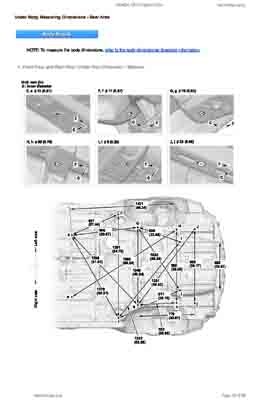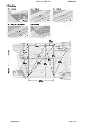 Контрольные кузовные размеры HONDA CR-V Hybrid 2023-- из официального руководства по ремонту кузова. Содержат размеры верхней и нижней части кузова, в том числе размеры моторного отсека, диагональные размеры проемов кузова, размеры подрамников и контрольные точки для восстановления геометрии кузова. Даны значения допустимых зазоров кузовных панелей.