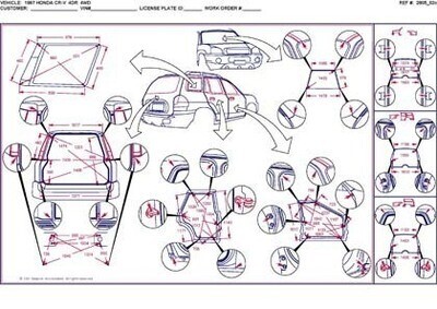 - Размеры кузова, как проекционные, так и непосредственного измерения, в том числе диагональные размеры проемов кузова.