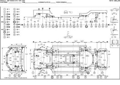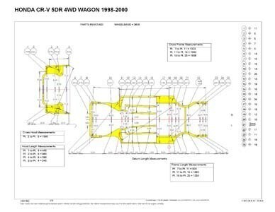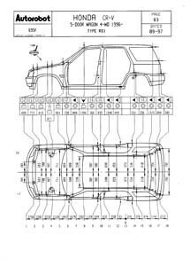 Контрольные кузовные размеры HONDA CR-V (RD1) 1996-2001: