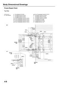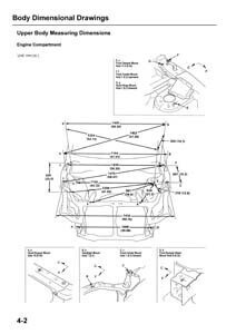 - Проекционные размеры с привязкой к стапелю. Дополнительно приведены цветные фотографии мест расположения контрольных точек на реальном автомобиле.