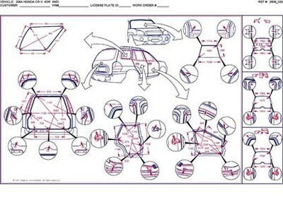 - Размеры кузова, как проекционные, так и непосредственного измерения, в том числе диагональные размеры проемов кузова.