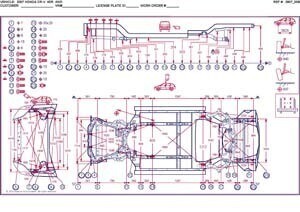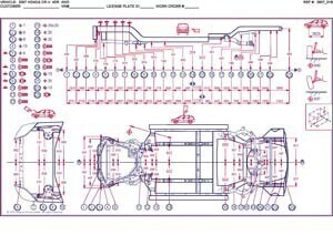 - Размеры кузова, как проекционные, так и непосредственного измерения, в том числе диагональные размеры проемов кузова.