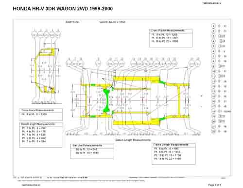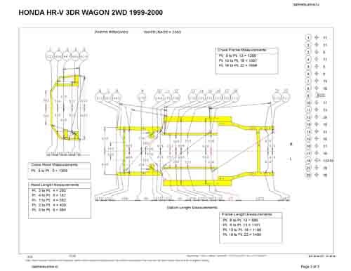 Контрольные кузовные размеры HONDA HR-V (GH) 1998-2001-2006