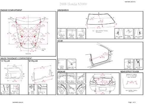 как проекционные, так и непосредственного измерения, в том числе диагональные размеры проемов кузова и контрольные точки для восстановления геометрии кузова.