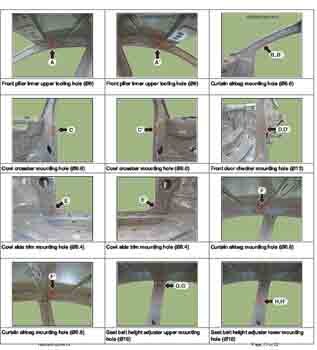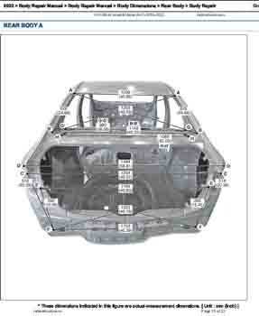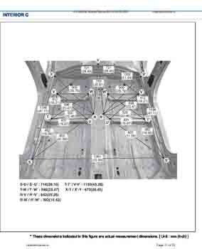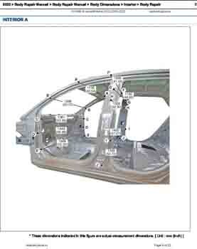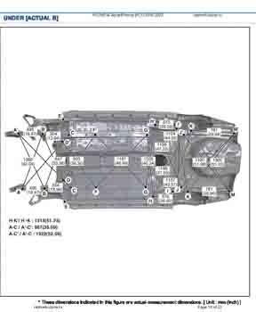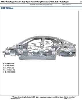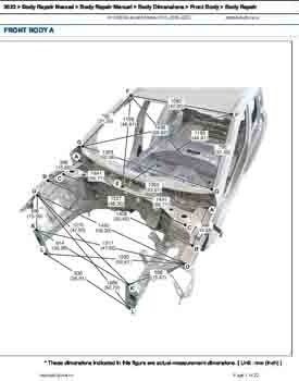 , как проекционные, так и непосредственного измерения, в том числе диагональные размеры проемов кузова и контрольные точки для восстановления геометрии кузова.