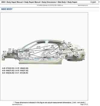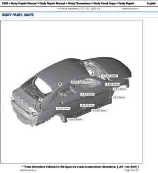 Контрольные размеры кузова для автомобилей HYUNDAI Elantra N (CN7N) 2021-2023--- из заводского руководства по ремонту кузова, в том числе размеры проемов кузова. Дополнительно приведены сведения о допустимых зазорах кузовных панелей.