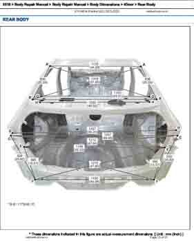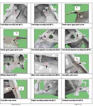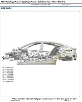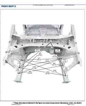 , как проекционные, так и непосредственного измерения, в том числе диагональные размеры проемов кузова и контрольные точки для восстановления геометрии кузова.