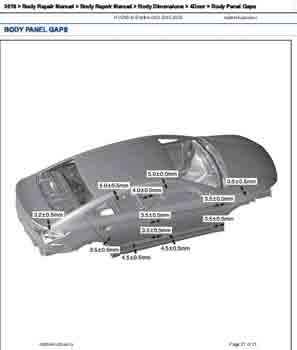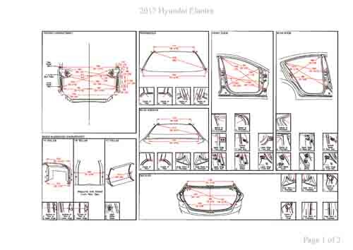 Контрольные размеры кузова для автомобилей HYUNDAI Elantra VI (AD) 2015-2018-2020 из заводского руководства по ремонту кузова, в том числе размеры проемов кузова. Дополнительно приведены сведения о допустимых зазорах кузовных панелей. Отдельный файл для модели Elantra Sport.